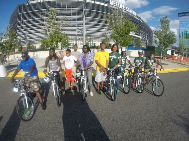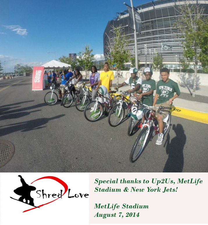 On August 7, 2014, 11 Shred Love participants received bikes, helmets and tickets to the New York Jets  pre-season game against the Colts at MetLife Stadium. We were selected by Up2Us for this opportunity. Up2Us is a leader in the sports-based youth development movement. We’ve partnered with Up2Us on several events and opportunities in the past, including the recent Dick’s Sporting Goods – Sports Matter Initiative and were extremely excited about this opportunity as well. We typically offer mountain biking through JORBA – Trips for Kids  during the spring and summer seasons and felt this was perfect to offer to the students that typically partake in our mountain biking outings.